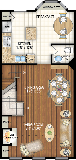 All baths have custom tile and plumbing fixtures. Kitchens have modern appliances, beautiful wood cabinetry and Corian countertops. Gas fireplaces, gas cooking and an in home washer/dryer are standard features. The living and dining rooms have hardwood floors and the rest of the unit is carpeted. Each unit has parking for 2 cars, either in a garage or surface lot. All units have a large patio and most rooms have been wired for cable TV and internet.Kettler Iceplex, home of the Washington Capitals hockey team, is only 2 blocks away.